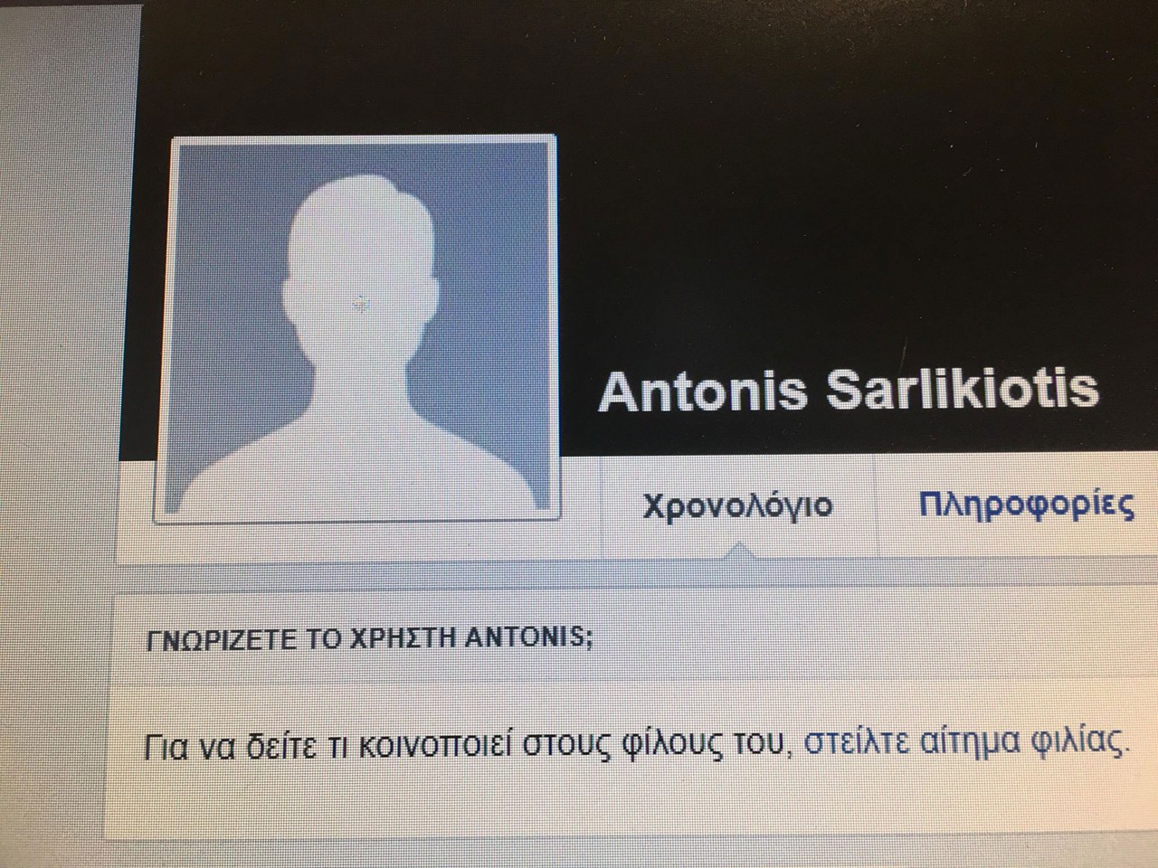 Σημειώνεται πως ο κ. Σαρλικιώτης διατηρεί προφίλ στο Facebook, όπου φαίνεται ότι εργαζόταν στη Novartis, ωστόσο το τελευταίο διάστημα είναι ανενεργό και χωρίς φωτογραφία.