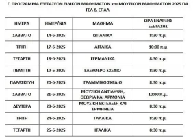 Οι εξετάσεις στα Γενικά Λύκεια θα αρχίσουν στις 30 Μαΐου 2025 και θα ολοκληρωθούν στις 6 Ιουνίου 2025.