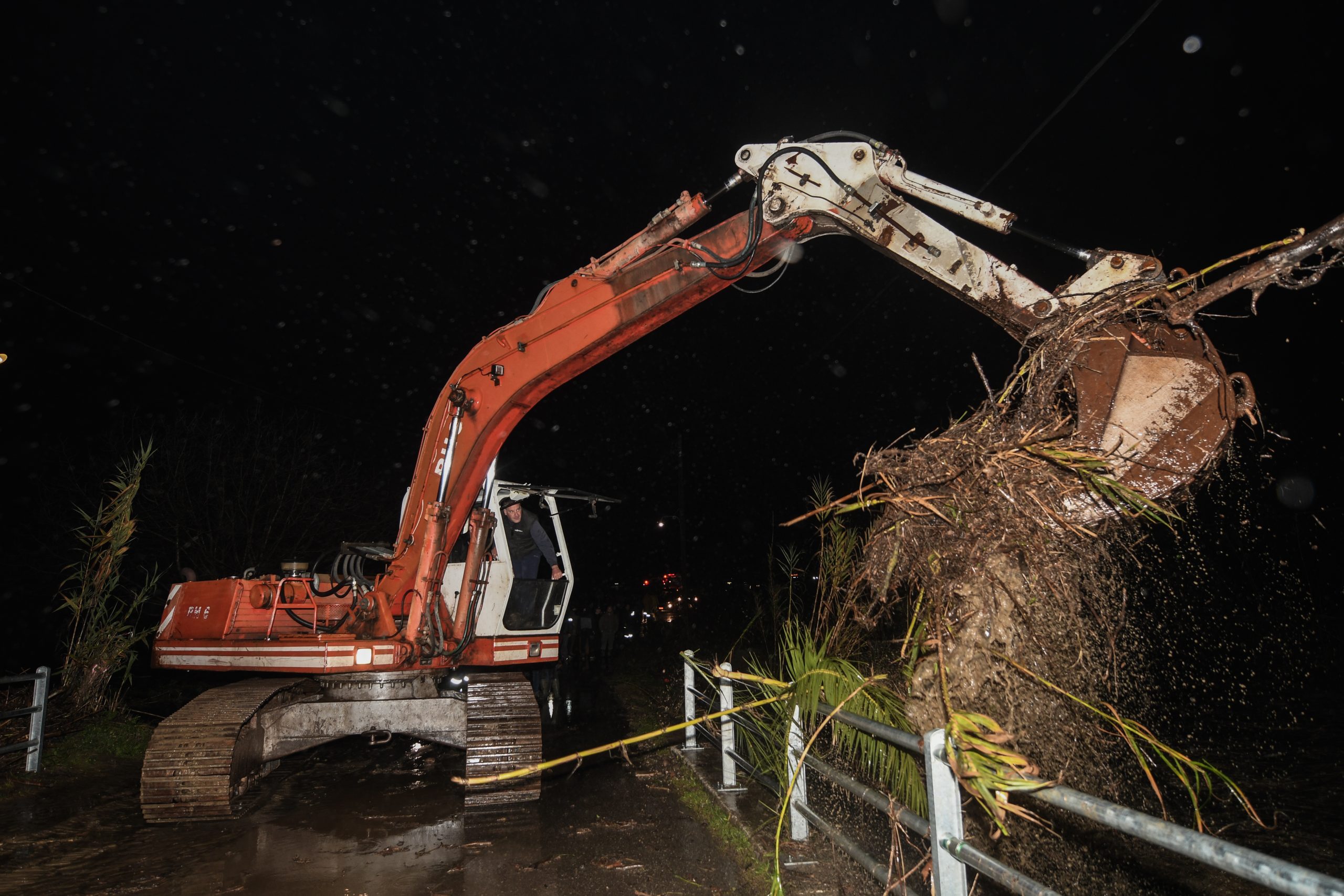 Η πίεση του νερού ήταν τέτοια που δεν επέτρεπε όμως ούτε στην πόρτα της συνοδηγού να ανοίξει. Άμεσα ζήτησαν βοήθεια και μεγάλα οχήματα του δήμου ξεκίνησαν για το σημείο. Ωστόσο, το κράσπεδο δεν άντεξε την πίεση, έσπασε και το αυτοκίνητο έπεσε στον χείμαρρο.