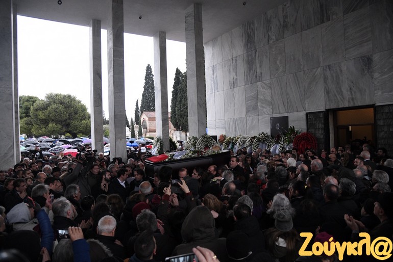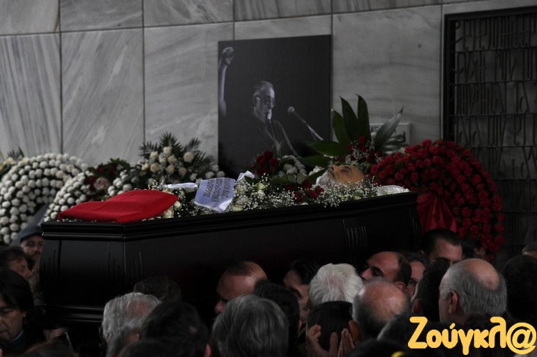 Θάνος. Πολιτική κηδεία, λοιπόν, από το Α’ Νεκροταφείο Αθηνών, δημοσία δαπάνη. Το φέρετρο το σήκωσαν οι στίχοι και το μετέφεραν οι ποιητές. Το έσερναν οι νότες κατευθυνόμενες από τη μαγική μπαγκέτα του μαέστρου.