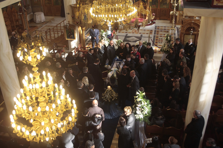 Συντετριμμένοι συγγενείς και φίλοι οδήγησαν τον αδικοχαμένο αξιωματικό στην τελευταία του κατοικία.
