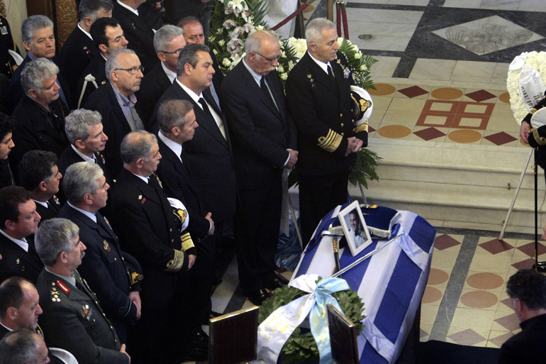 To παρών στην κηδεία έδωσε ο υπουργός Εθνικής Άμυνας Πάνος Καμμένος (πενθεί και για την απώλεια του πατέρα του) και ο αναπληρωτής υπουργός Δημήτρης Βίτσας.