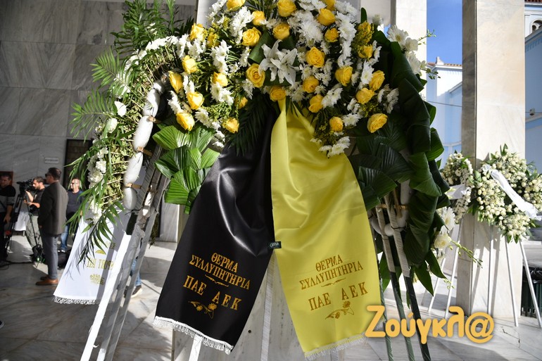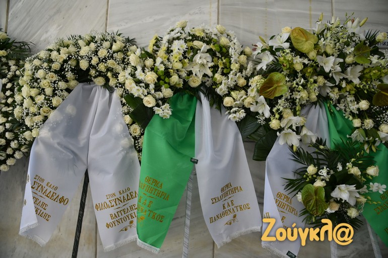 Ήδη το προαύλιο του ιερού ναού στον οποίο θα ψαλεί η εξόδιος ακολουθία έχει γεμίσει από στεφάνια που έχουν στείλει, μεταξύ άλλων οι Γιώργος Βαρδινογιάννης, Βαρδής Βαρδινογιάννης, Ιβάν Σαββίδης, Ευάγγελος Μαρινάκης, ο Ντούσαν Μπάγιεβιτς, ο γ.γ. Α. Γιώργος Μαυρωτάς, ο συνάδελφος και συνοδοιπόρος του Βαγγέλης Φουντουκίδης, το MEGA, ο SportFm, το Βήμα, τα ΝΕΑ, οι ΠΑΕ Παναθηναϊκός, ΠΑΟΚ, ΑΕΚ, Ολυμπιακός, η ΕΣΗΕΑ, ο ΣΕΓΑΣ, η ΕΡΤ, η ΕΟΕ και πολλοί άλλοι.