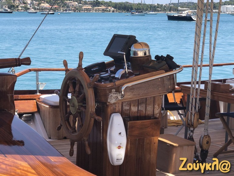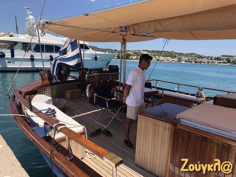 Με ζήλια κοιτάς τα καλογυαλισμένα ξύλα του σπιράγιου και της κουπαστής. Ο Κωνσταντίνος με τη σύζυγό του Άννα Μαρία καμαρώνουν φωτογραφιζόμενοι στην κουβέρτα με τον ήλιο να αντανακλά και να παίζει πάνω στο βαθύ μπλε του καϊκιού.