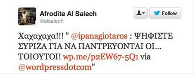 Το στέλεχος του ΠΑΣΟΚ, Αφροδίτη Αλ Σαλέχ είδε την ανάρτηση και έκανε retweet γράφοντας παράλληλα “χαχαχα”: