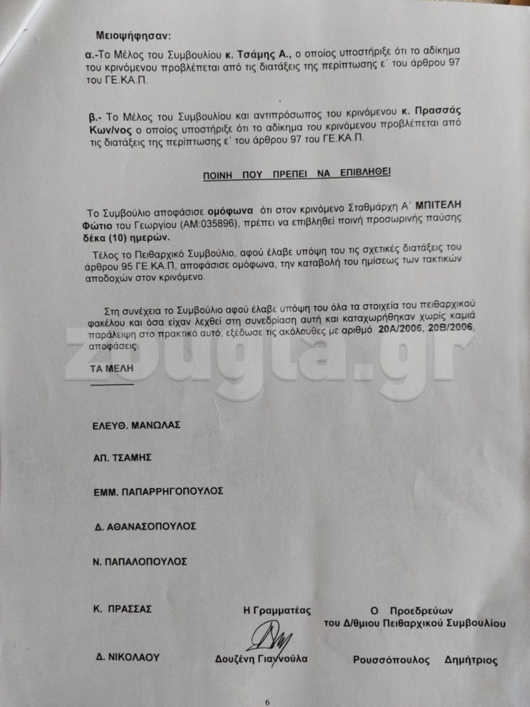 Στους δύο σταθμάρχες θα επιβληθεί από το Δευτεροβάθμιο Πειθαρχικό Συμβούλιο η ποινή της παύσης από τα καθήκοντά τους δέκα ημερών.