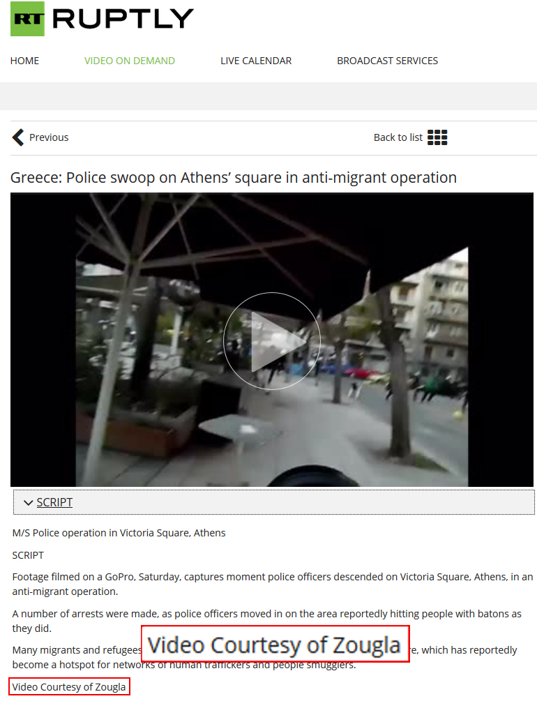 Εκτός από τους ελληνικούς τηλεοπτικούς σταθμούς και το Russia Today (RT), το μεγαλύτερο ρωσικό δίκτυο (αγγλόφωνο) και από τα πιο έγκυρα ειδησεογραφικά sites διεθνούς εμβέλειας αναπαρήγαγε τις εικόνες του zougla.gr.