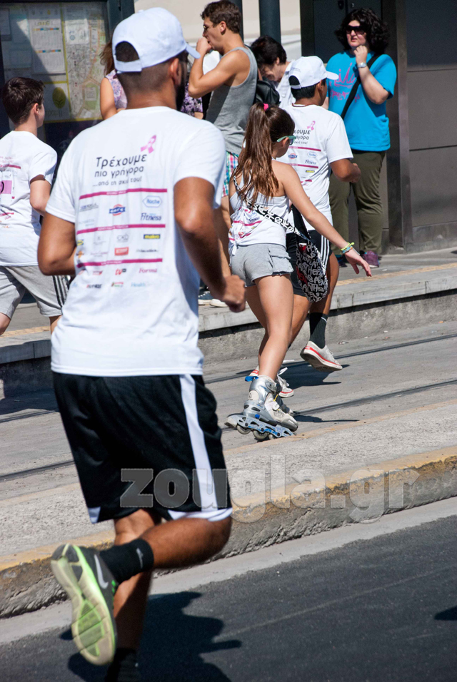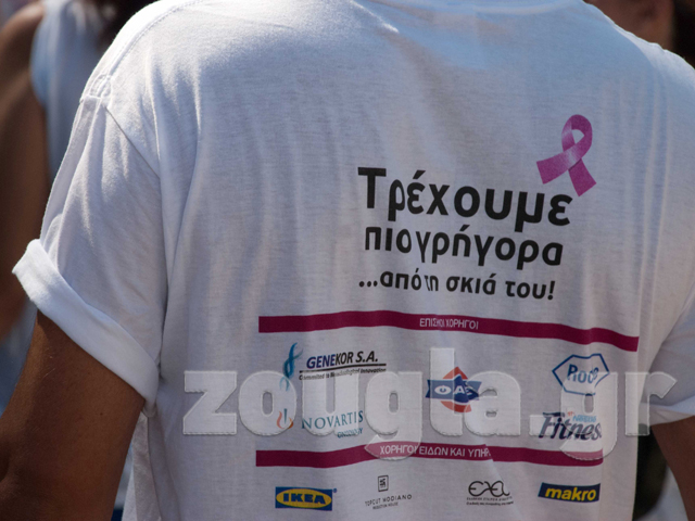 «Τρέχουμε πιο γρήγορα από τη σκιά του» ήταν η φράση που επέλεξε αυτή τη φορά ο Πανελλήνιος Σύλλογος Γυναικών με Καρκίνο Μαστού «Άλμα Ζωής», υπεύθυνος για τη διοργάνωση του Αγώνα «Greece Race for the Cure», που πραγματοποιήθηκε την Κυριακή, 29 Σεπτεμβρίου, στο Ζάππειο.