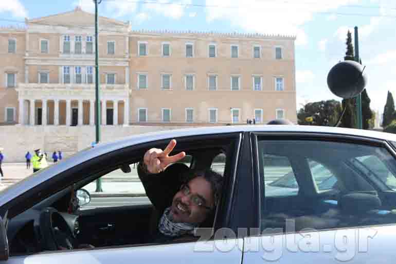 Μηχανοκίνητη πορεία πραγματοποίησαν στο Σύνταγμα, την Κυριακή, υγειονομικοί που έχουν τεθεί σε αναστολή διαμαρτυρόμενοι για την πολιτική της κυβέρνησης. Κορνάροντας και έχοντας κρεμάσει στα οχήματά τους μαύρες σημαίες και μπαλόνια έκαναν τον γύρο της πλατείας στο κέντρο της Αθήνας, σχηματίζοντας με τα χέρια το σήμα της νίκης.