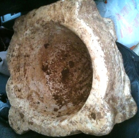 • Μία μαρμάρινη λεκάνη από κιονόκρανο σε δεύτερη χρήση. Στην βάση του κιονόκρανου διακρίνεται γόμφος ενώ σε όλες τις πλευρές φέρει έξεργο ανάγλυφο. Ανά πλευρά κοσμείται με φυτικό διάκοσμο άκανθας ή βούκρανο. Χρονολογείται στα υστερορωμαϊκά-παλαιοχριστιανικά χρόνια με διαστάσεις διαμέτρου 0,26 εκ. και ύψους 0,28 εκ.