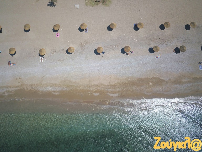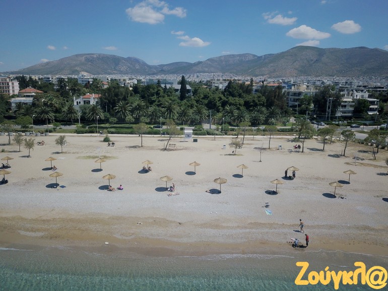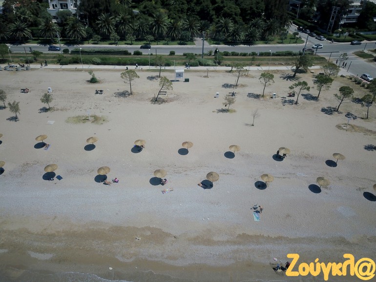 Έτσι οι ομπρέλες στην παραλία της Γλυφάδας τοποθετήθηκαν σε απόσταση περίπου 5 μέτρων η μία από την άλλη, και η εικόνα είναι αυτή που θα δείτε στο εναέριο βίντεο του zougla.gr: