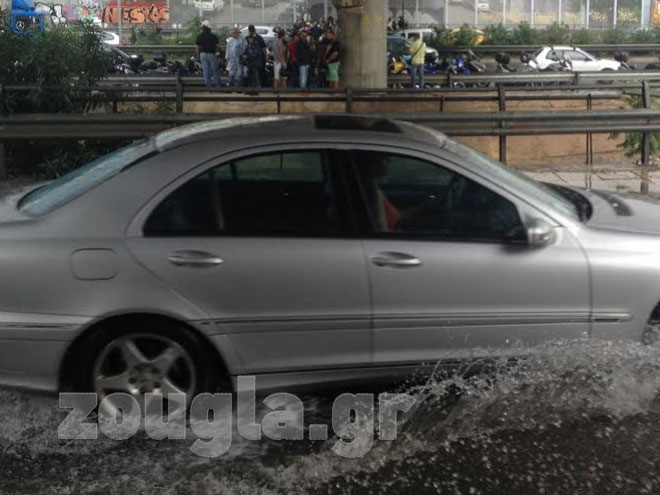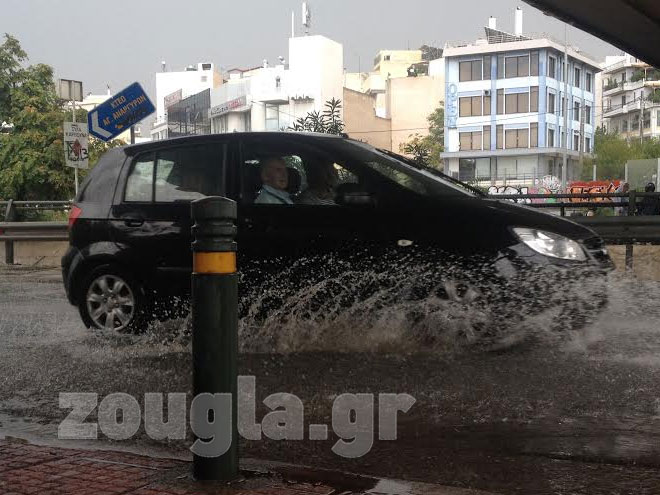 Ποτάμια θυμίζουν οι δρόμοι σε διάφορες συνοικίες του λεκανοπεδίου της Αττικής λόγω της έντονης βροχόπτωσης το μεσημέρι της Τρίτης...