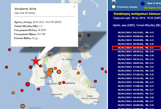 Ισχυρός σεισμός στην Κεφαλλονιά, Πρώτη καταχώρηση: Κυριακή, 26 Ιανουαρίου 2014, 15:58