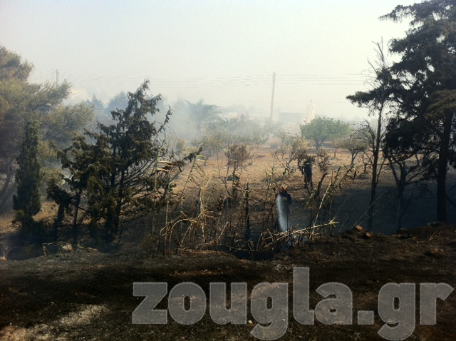 Σύμφωνα με την Πυροσβεστική Υπηρεσία, οι φλόγες έχουν αγγίξει τις αυλές πέντε σπιτιών, ενώ εκκενώθηκε η παιδική κατασκήνωση που βρισκόταν στην περιοχή καθώς και το Μοναστήρι της Παναγίας.