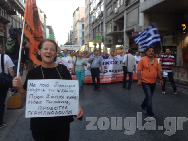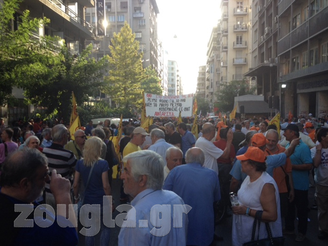 Το «παρών» στη συγκέντρωση έδωσαν μέλη της ΑΔΕΔΥ, του κινήματος «Δεν Πληρώνω» και απολυμένοι της ΕΡΤ και καθαρίστριες.