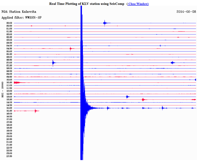 Δείτε πώς κατέγραψε τη δόνηση ο σεισμογράφος του Γεωδυναμικού Ινστιτούτου του Εθνικού Αστεροσκοπείου Αθηνών που είναι εγκατεστημένος στα Καλάβρυτα: