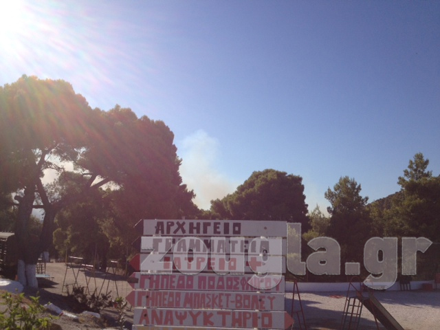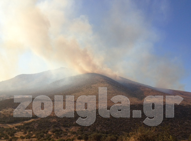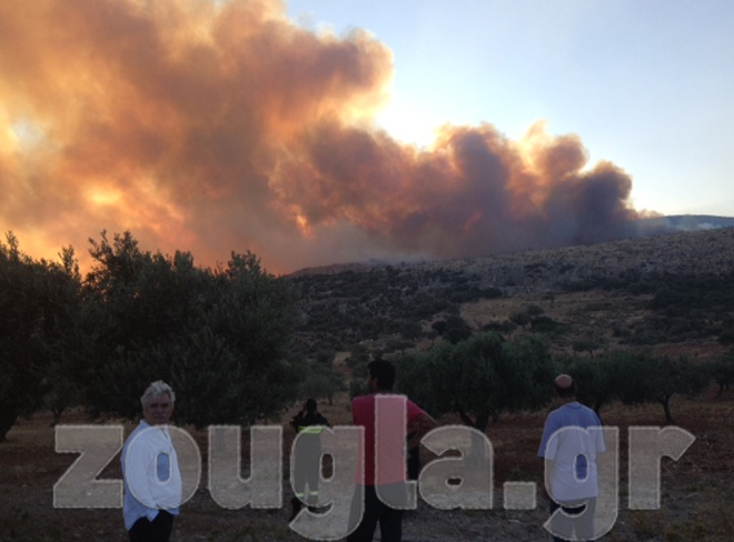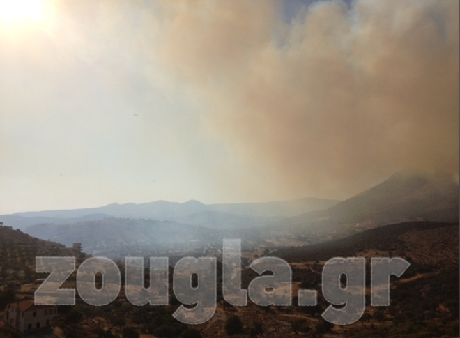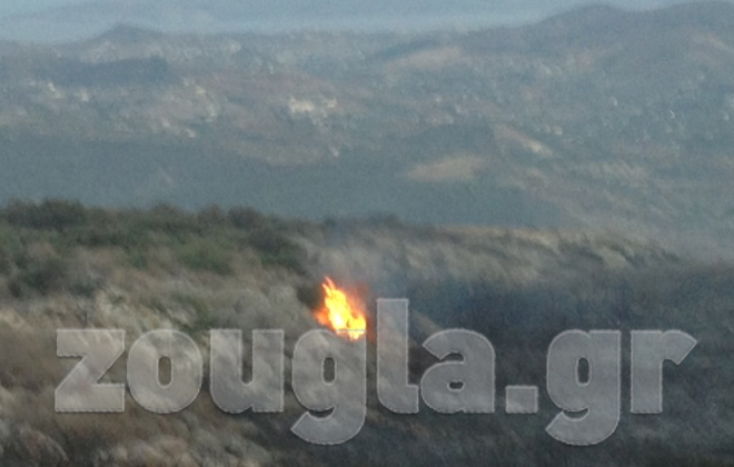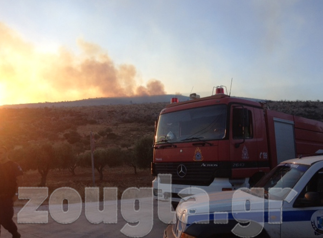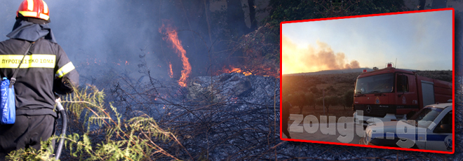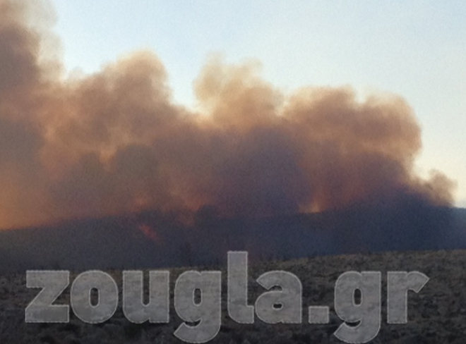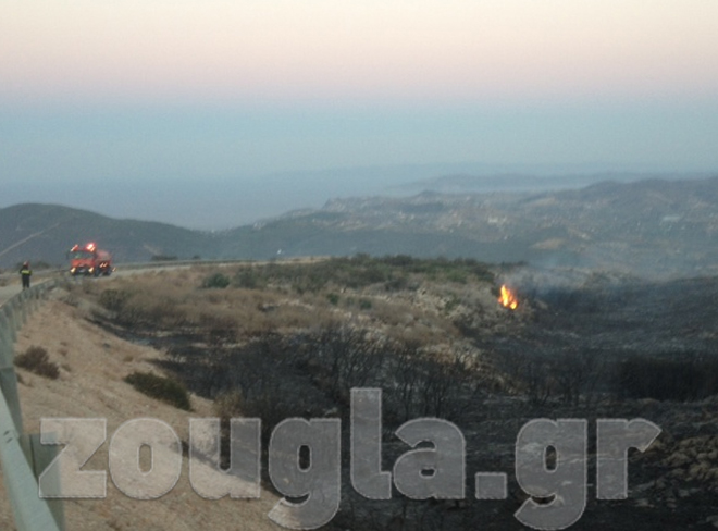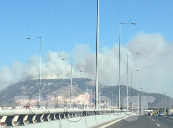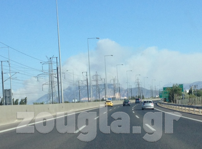 (Η φωτιά είναι ορατή από την Εθνική Οδό)