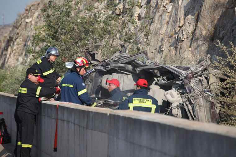 Ένα μικρό βαν που μετέφερε μετανάστες ιρανικής καταγωγής χωρίς έγγραφα εξετράπη της πορείας του, πέρασε το διαχωριστικό τοιχίο των δύο ρευμάτων κυκλοφορίας και έπεσε με σφοδρότητα πάνω στα βράχια.