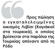 Προς πώληση βγαίνει ένα εγκαταλελειμμένο χωριό στα τουρκικά παράλια απέναντι από τη Ρόδο, στο οποίο κατοικούσαν ελληνικής καταγωγής πληθυσμοί.