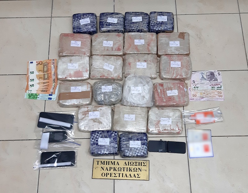 Κατασχέθηκαν η παραπάνω ποσότητα ναρκωτικών, το Ι.Χ.Ε. αυτοκίνητο, κινητά τηλέφωνα και χρηματικά ποσά (700 ευρώ και 370 τούρκικες λίρες).