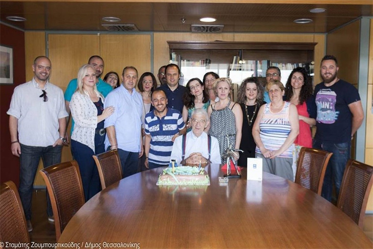 Σημειώνεται πως οι συνεργάτες του έκαναν δώρο στον Δήμαρχο ένα αγαλματίδιο που αναπαριστά έναν χορευτή και μια χορεύτρια.
