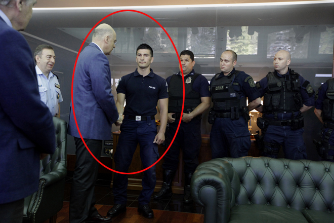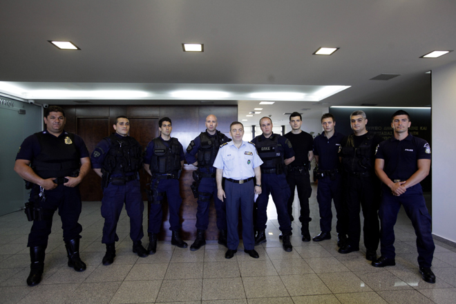 Οι αστυνομικοί έγιναν δεκτοί από τον υπουργό στο γραφείο του, ο οποίος τους συνεχάρη για το έργο τους.