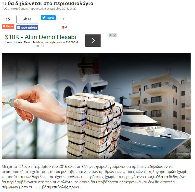 «Δεν θα ψάξουμε το βραχιόλι της γιαγιάς. Αν ο παππούς ξεχάσει να δηλώσει το χωράφι που χάρισε στο εγγόνι, δεν θα επέμβουμε. Δεν πρόκειται να ασχοληθούμε με μικροποσά, 10-15-20.000 ευρώ, όταν έχουμε τις λίστες με τα εκατομμύρια. Θα ασχοληθούμε με όσους έχουν λεφτά στο εξωτερικό και δεν φορολογήθηκαν για αυτά, τους φοροφυγάδες εκείνους που συμμετείχαν στο… πάρτι και δεν πλήρωναν τόσο καιρό».