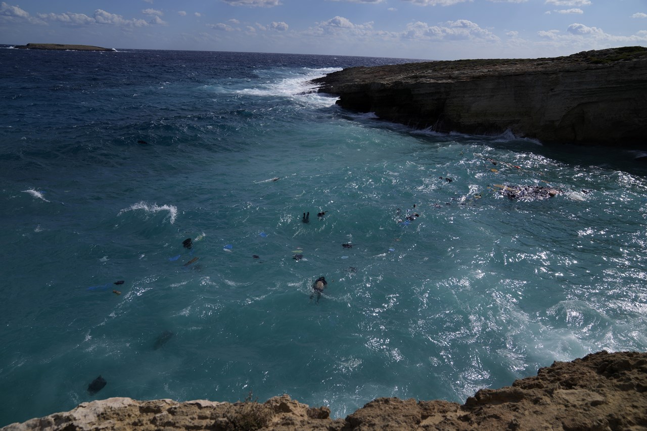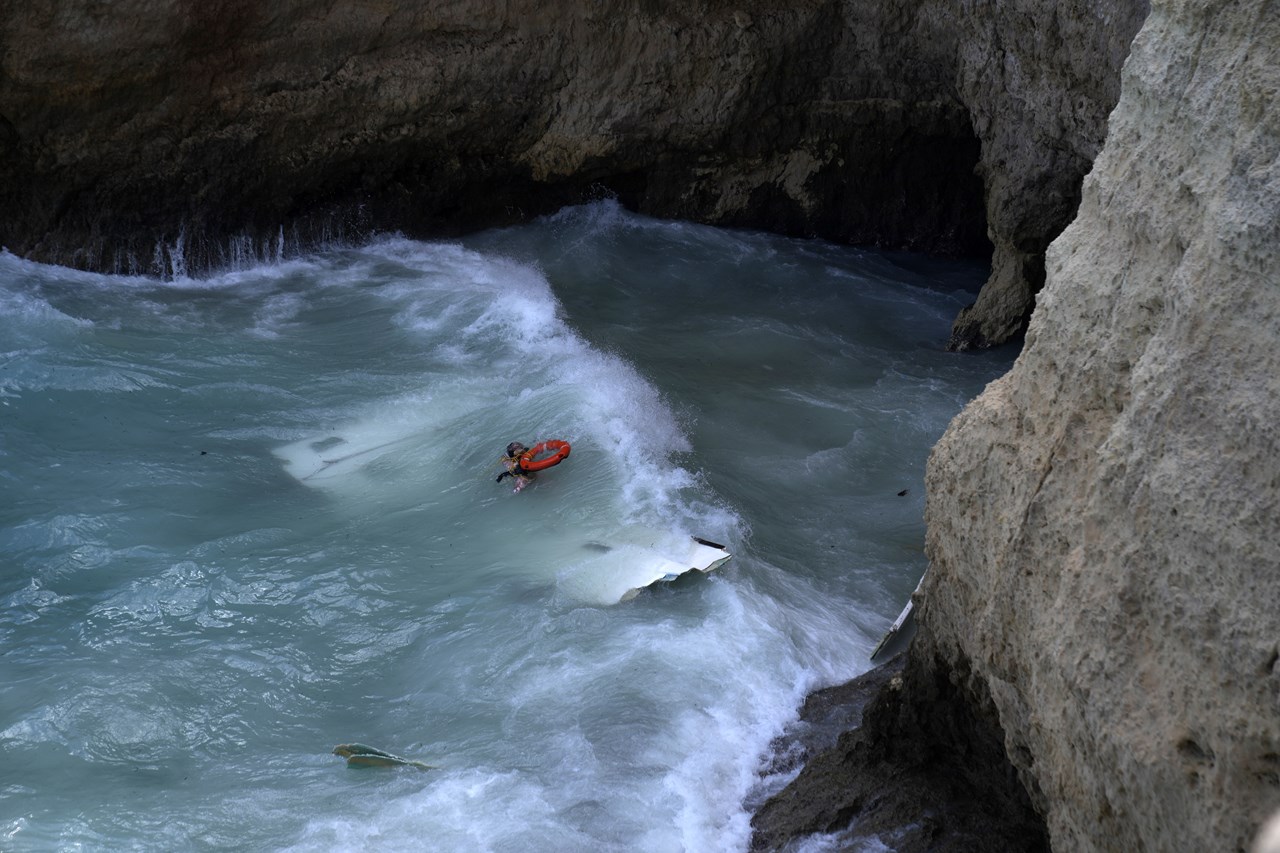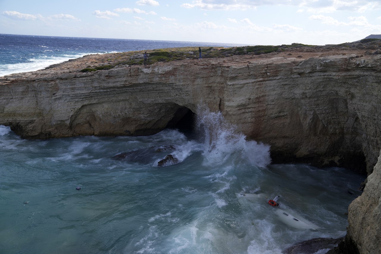 Πρόσθεσε ότι οι άτυχοι μετανάστες παρασύρθηκαν από τα κύματα και το σκάφος τους προσέκρουσε και διαλύθηκε πάνω σε βράχια κάθετα που έχουν ύψος 15 – 20 μέτρα.