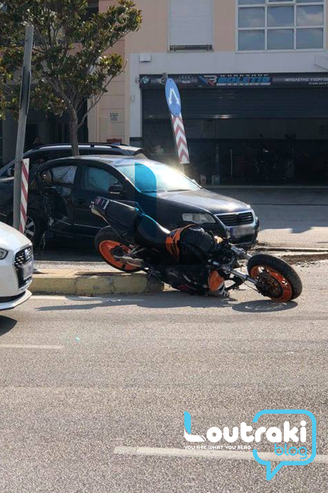 Το τροχαίο σημειώθηκε σήμερα το απόγευμα στο Λουτράκι, επί της λεωφόρου Αθηνών, στο ύψος του βενζινάδικου της ΑVIN.