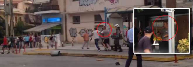 Λίγο μετά τις 19.00 σημειώθηκαν επεισόδια, όταν σύμφωνα με αυτόπτες μάρτυρες ένας άνθρωπος πάνω σε μηχανάκι άρχισε να κάνει βόλτες στο σημείο. Οι συγκεντρωμένοι τού ζήτησαν τον λόγο και άρχισαν να του κάνουν ερωτήσεις για την ιδεολογική του τοποθέτηση και τα πολιτικά του πιστεύω. Κάποια στιγμή και έχοντας περικυκλωθεί από διαδηλωτές, έβγαλε όπλο, το οποίο και χρησιμοποίησε πυροβολώντας στον αέρα για εκφοβισμό.