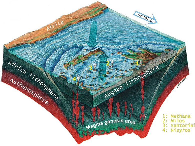 Ο ελλαδικός χώρος είναι γεμάτος από ηφαίστεια εξού και η νησιωτικότητά του. Βέβαια, τα πιο «καινούρια» από αυτά τα ηφαίστεια βρίσκονται στο λεγόμενο «ηφαιστειακό τόξο του Νοτίου Αιγαίου», το οποίο ξεκινάει από τον Σαρωνικό, περνάει από τη Μήλο και τη Σαντορίνη και καταλήγει στην Κω και τη Νίσυρο.