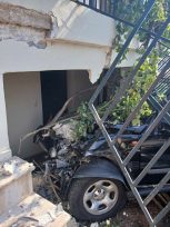 Ο οδηγός του οχήματος έχασε τον έλεγχο και έπεσε πάνω στα κάγκελα της αυλής τα οποία και παρέσυρε.