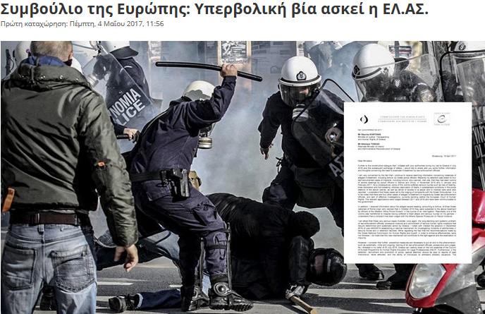 Υπενθυμίζεται ότι στο αποκλειστικό ρεπορτάζ του zougla.gr αποκαλυπτόταν πως στην επίμαχη επιστολή του ο επίτροπος ανέφερε ότι έχει στα χέρια του πληθώρα τεκμηριωμένων και πολύ σοβαρών περιπτώσεων κακομεταχείρισης πολιτών από αστυνομικούς που, όπως υπογράμμιζε, «καταδεικνύουν το μακροχρόνιο και συστηματικό πρόβλημα της υπερβολικής χρήσης βίας στην επιβολή του νόμου, το οποίο απαιτεί αποφασιστική και συστηματική δράση της Ελλάδας».