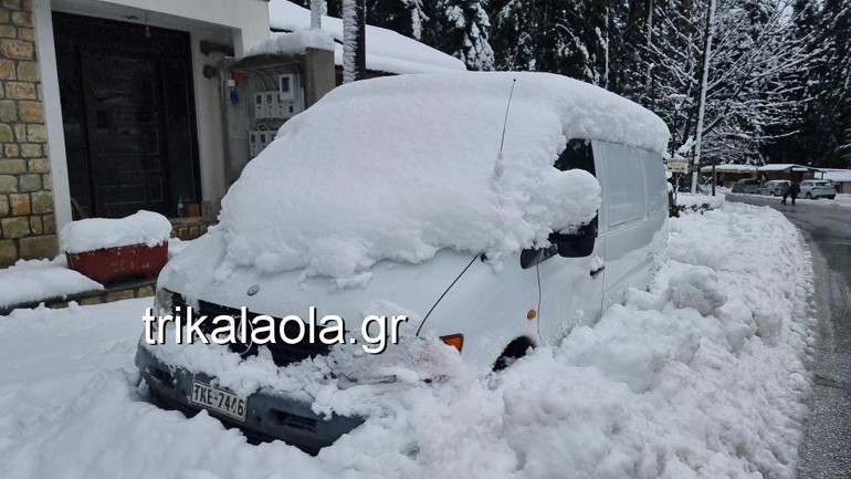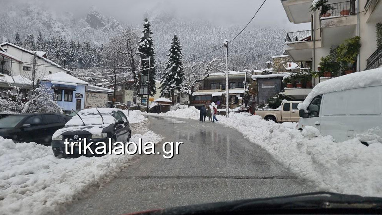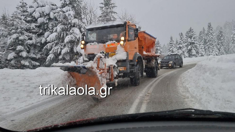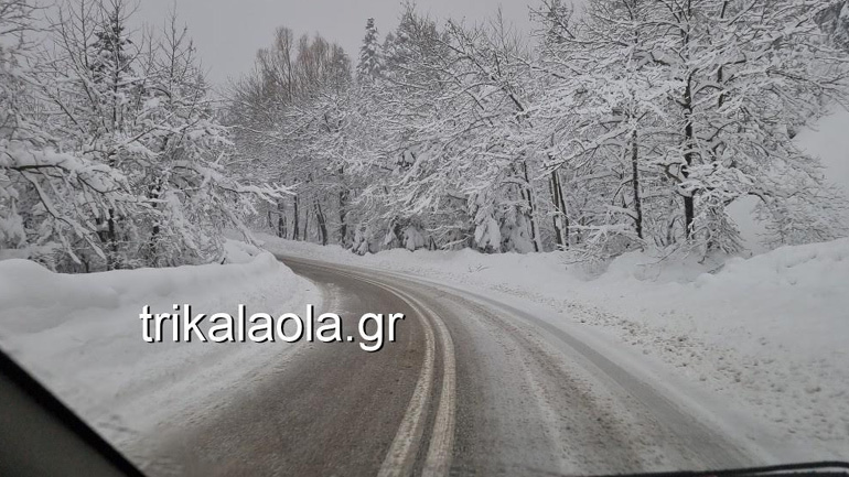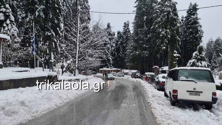 Κάτασπρες είναι πολλές περιοχές στα ορεινά των Τρικάλων, από την Αναβρυσούλα μέχρι το χιονοδρομικό κέντρο και τη διασταύρωση προς Καλαμπάκα.