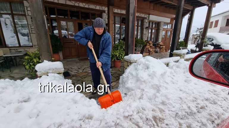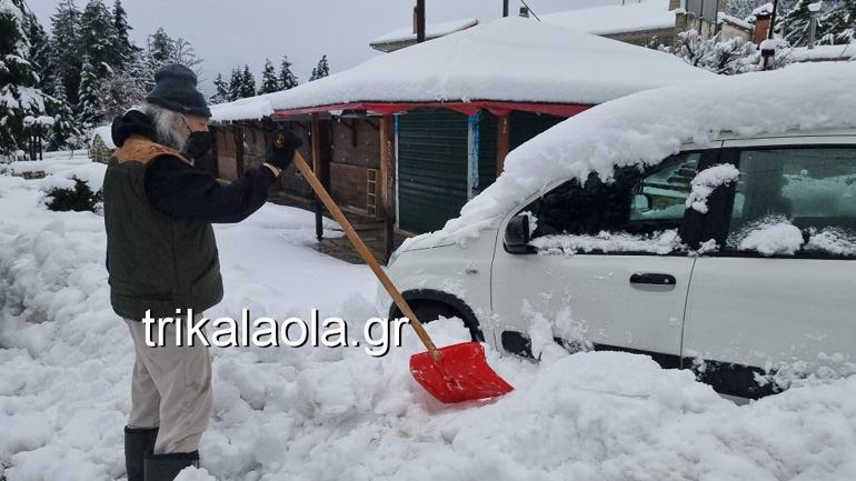 Στην Ελάτη οι ιδιοκτήτες των αυτοκινήτων τα «ξέθαβαν» από το πολύ χιόνι, που ξεπερνούσε τους 40 πόντους, ενώ σε πιο ορεινές περιοχές το χιόνι ξεπερνάει τους 80 πόντους.