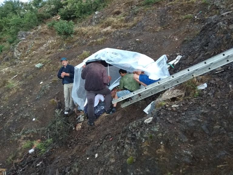 Ειδοποιήθηκε Πυροσβεστική και ΕΚΑΒ και με την συνδρομή και κατοίκων του χωριού, που γνωρίζουν το σημείο στήθηκε δύσκολη επιχείρηση διάσωσης εν μέσω έντονης καταιγίδας.