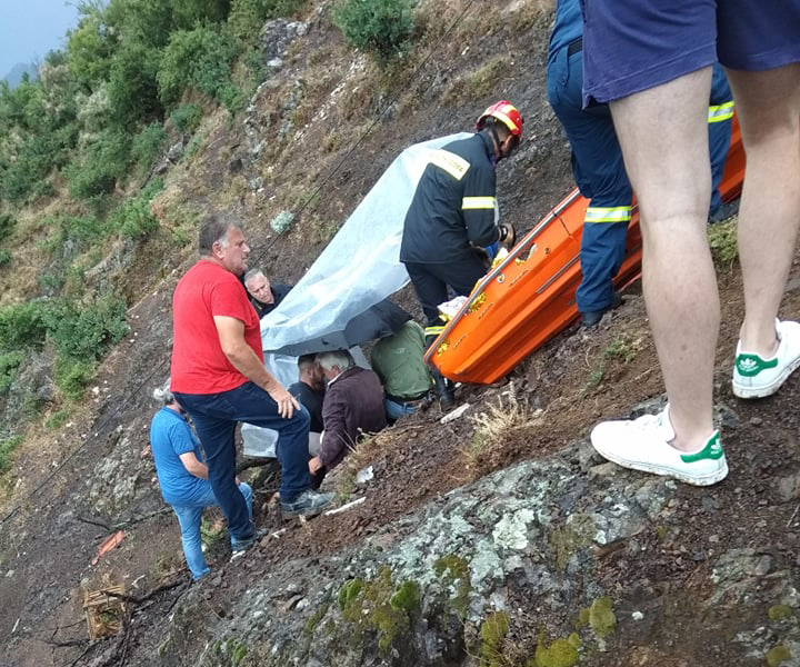 Ειδοποιήθηκε Πυροσβεστική και ΕΚΑΒ και με την συνδρομή και κατοίκων του χωριού, που γνωρίζουν το σημείο στήθηκε δύσκολη επιχείρηση διάσωσης εν μέσω έντονης καταιγίδας.