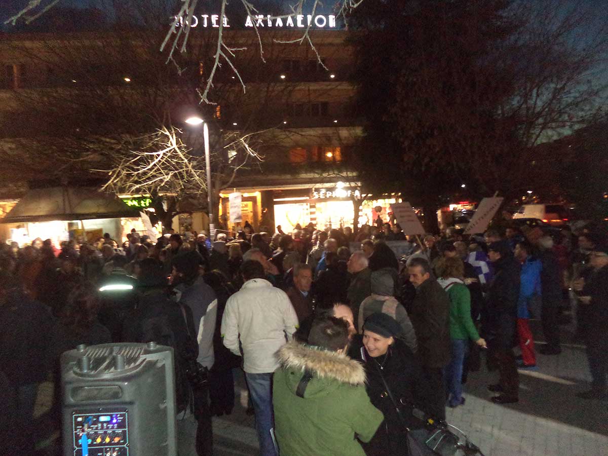 Μια μεγάλη συγκέντρωση πραγματοποιείται αυτή την ώρα στην πλατεία «Ρήγα Φεραίου» των Τρικάλων, με κεντρικό σύνθημα «Αντιστεκόμαστε».