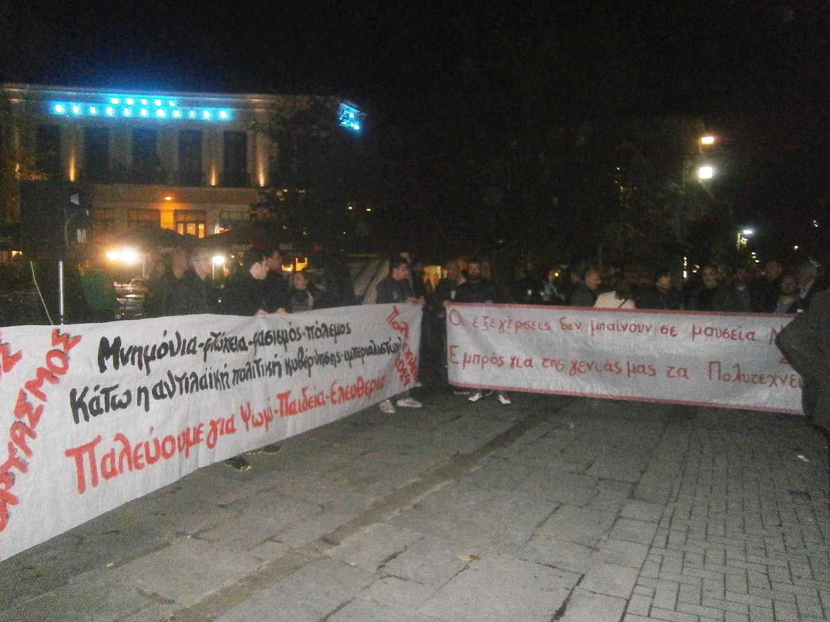 Αρχικά έλαβε χώρα συγκέντρωση στην πλατεία «Ρήγα Φεραίου», όπου υπήρξαν ομιλίες εκπροσώπων των συγκεντρωμένων και εν συνεχεία ακολούθησε πορεία σε κεντρικούς δρόμους της πόλης.