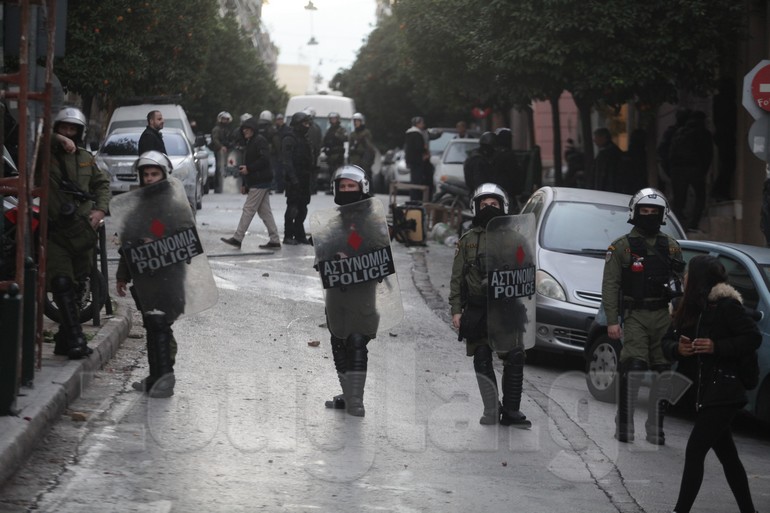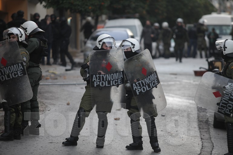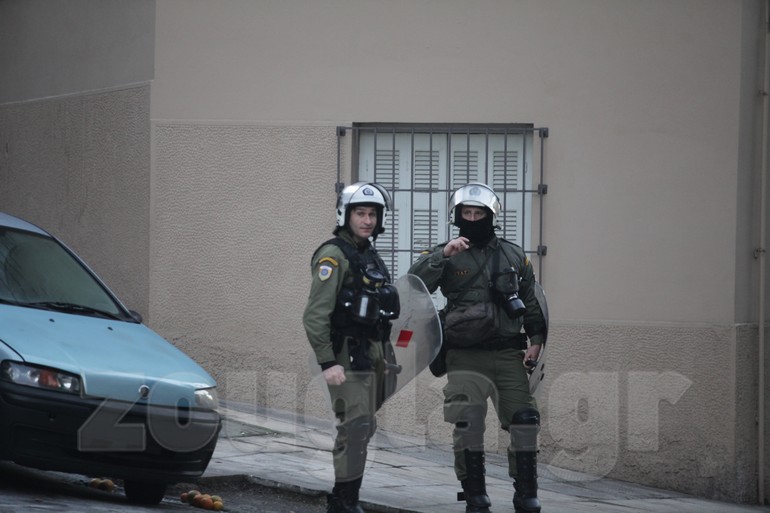 Η αστυνομία έχει εισβάλλει στον εσωτερικό χώρο των κτηρίων και ελέγχει όλους τους χώρους προκειμένου να εντοπίσει καταληψίες.