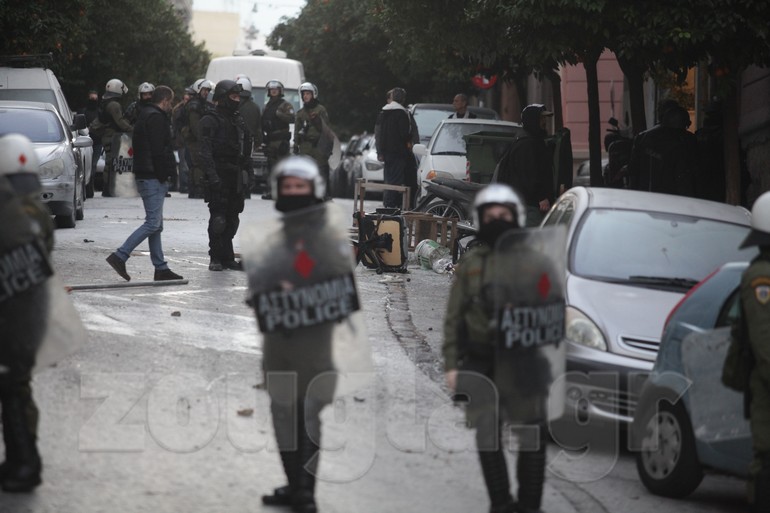 Από τις 6:00 το πρωί, ισχυρές αστυνομικές δυνάμεις επιχείρησαν να εισέλθουν στις οδούς Ματρόζου 45, Παναιτωλίου 21 και Άρβαλη 3. Μέσα σε ένα από τα κτήρια υπήρχαν αντιδράσεις, καθώς οι καταληψίες χρησιμοποίησαν πυροσβεστήρες και φώναζαν κατά των αστυνομικών οι οποίοι απάντησαν κάνοντας χρήση χειροβομβίδων κρότου λάμψης, επιχειρώντας με τροχό να ανοίξουν τις πόρτες.