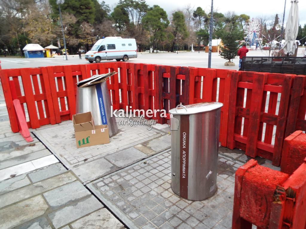 Η δημοτική Αρχή τοποθέτησε ξύλινους φράχτες μπροστά από τους μεταλλικούς κάδους, στις πλατείες Πετρινού και Άρεως, εντάσσοντάς τους στο κλίμα των ημερών.