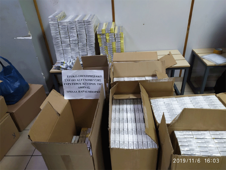 Μετά από έρευνες, παρουσία δικαστικού λειτουργού, στις δύο αποθήκες, βρέθηκαν συνολικά και κατασχέθηκαν -7.820- πακέτα τσιγάρα και -790- συσκευασίες καπνού, τα οποία δεν έφεραν την προβλεπόμενη από τον νόμο ταινία ειδικού φόρου κατανάλωσης καπνού.