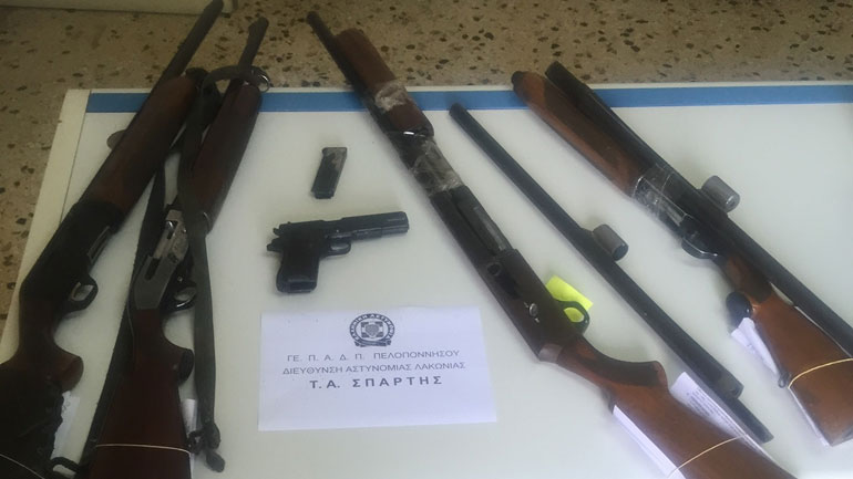 Συνελήφθησαν την Τρίτη σε τοπικές κοινότητες του Δήμου Ανατολικής Μάνης Λακωνίας, σε δύο ξεχωριστές περιπτώσεις, από αστυνομικούς του Τμήματος Ασφαλείας Σπάρτης, με τη συνδρομή αστυνομικών της Ομάδας Πρόληψης και Καταστολής Εγκληματικότητας (Ο.Π.Κ.Ε.) τρεις Έλληνες, ηλικίας 68, 33 και 32 ετών, για παράβαση της νομοθεσίας περί όπλων.