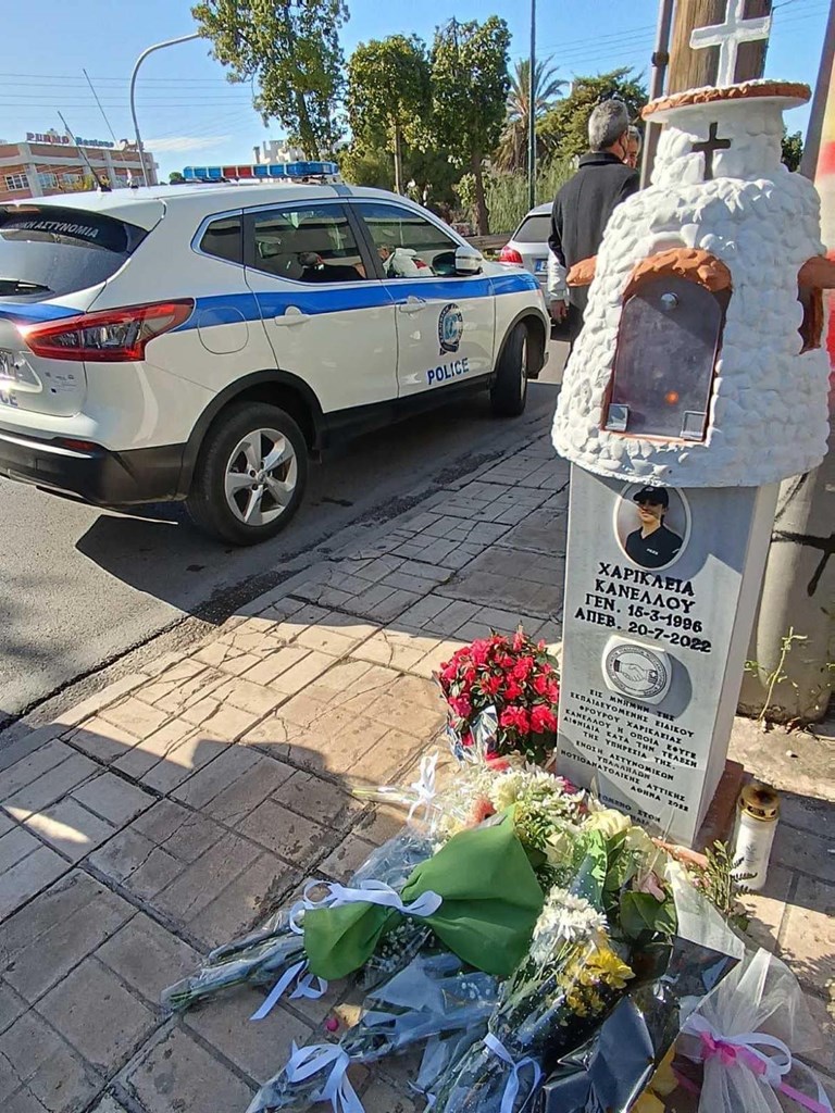 Τρισάγιο στη μνήμη της νεαρής αστυνομικού, Χαρούλας Κανέλλου, που τον περασμένο Ιούλιο έχασε την ζωή της εν ώρα υπηρεσίας στη λεωφόρο Αλίμου τελέστηκε χθες το πρωί από φίλους και συναδέλφους.