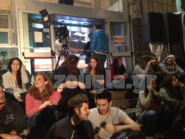 (Πλήθος κόσμου παραμένει στο προαύλιο της ΕΡΤ)