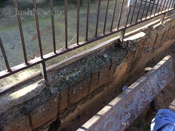 Επιπλέον, στον χώρο υπάρχουν επικίνδυνα σημεία, ενώ η μια πλευρά του τοίχου της αυλής είναι ετοιμόρροπη.