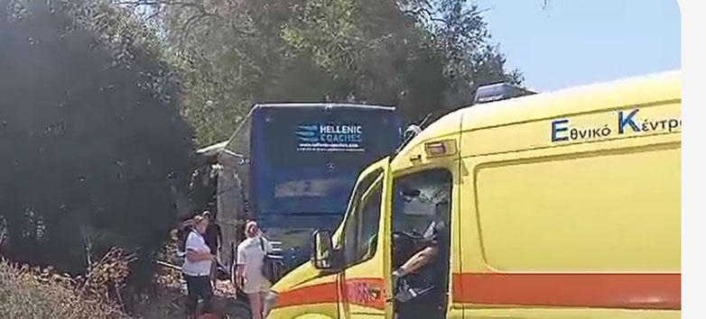 Νεκρός είναι ο 31χρονος οδηγός του τουριστικού λεωφορείου ενώ υπάρχουν και τρεις ακόμα τραυματίες, ένας Βρετανός τουρίστας με κάταγμα στο πόδι και μια μητέρα με το παιδί της, που μεταφέρθηκαν στο νοσοκομείο.