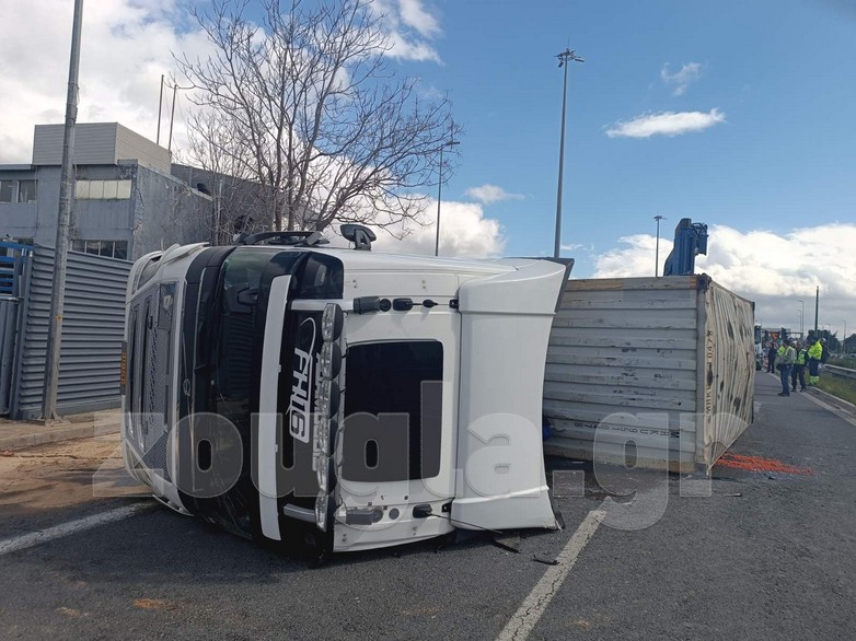 Aνατροπή νταλίκας στην γέφυρα Καλυφτάκη
