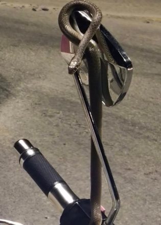 Κοιτάζοντας εν κινήσει, αντιλήφθηκε ότι ένα φίδι είχε τυλιχθεί γύρω από το τιμόνι, με το κεφάλι του να ακουμπά το χέρι του.